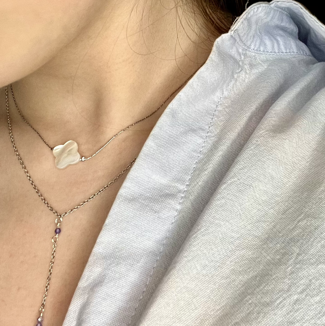 Collier court Trèfle Nacre